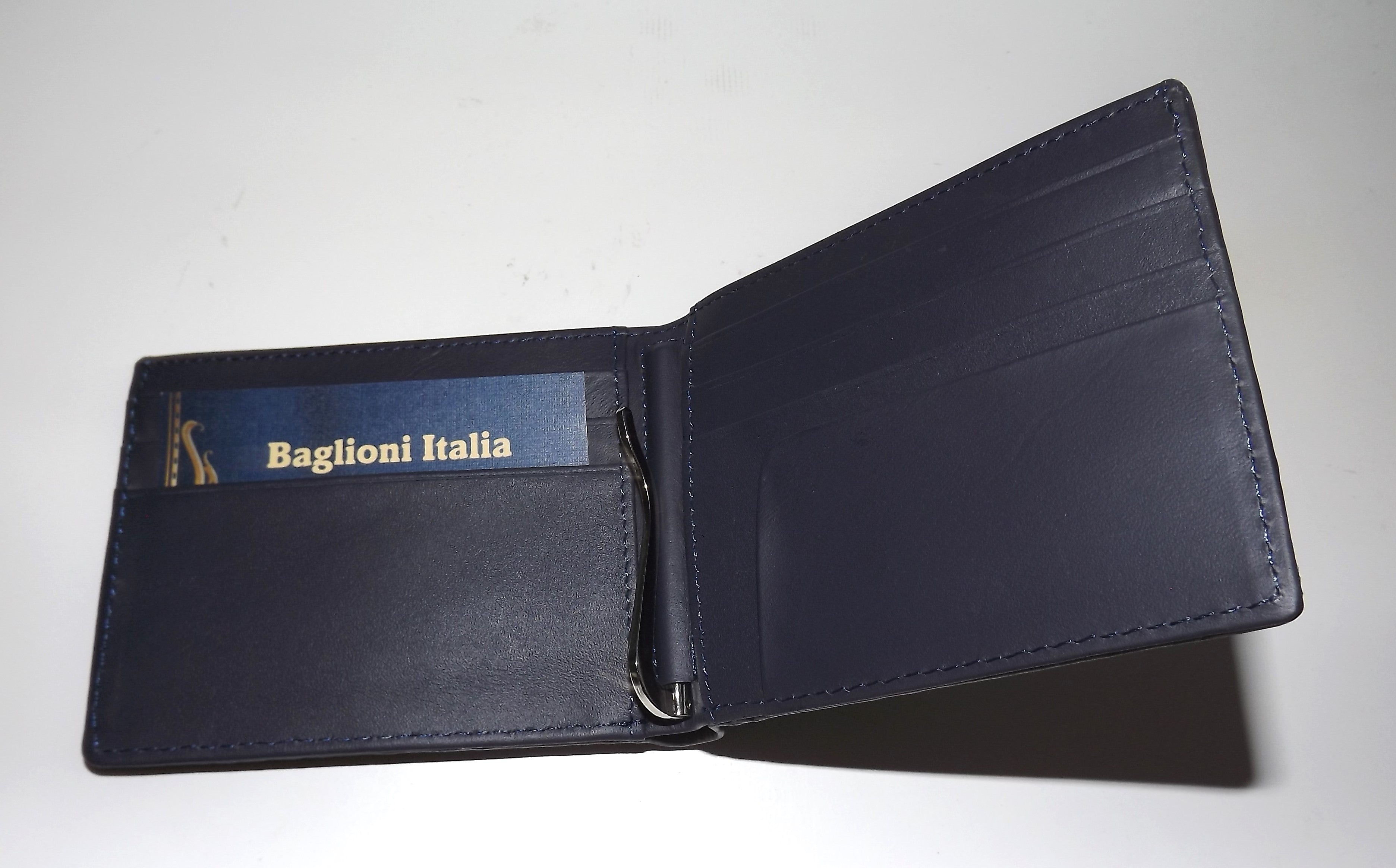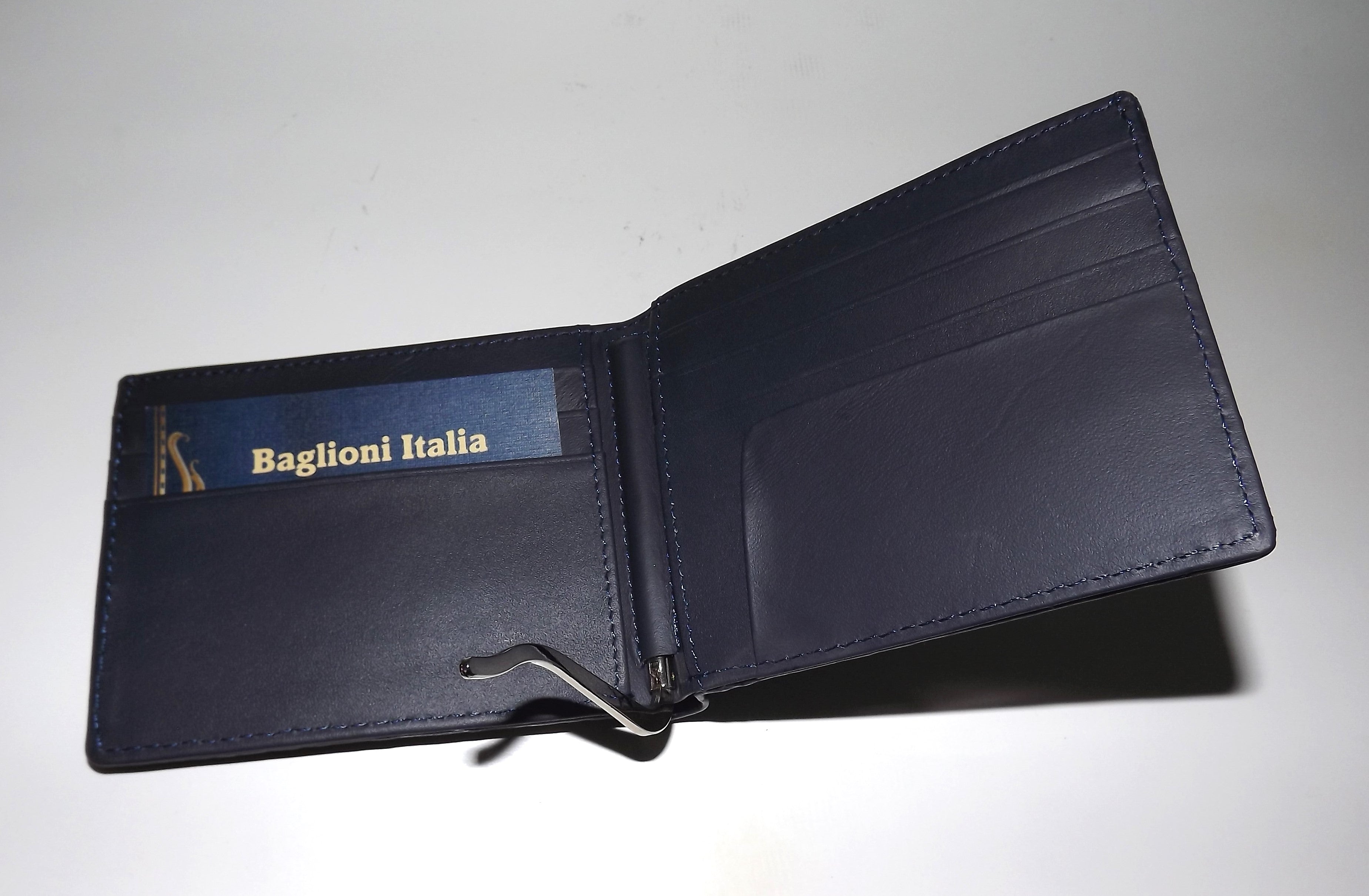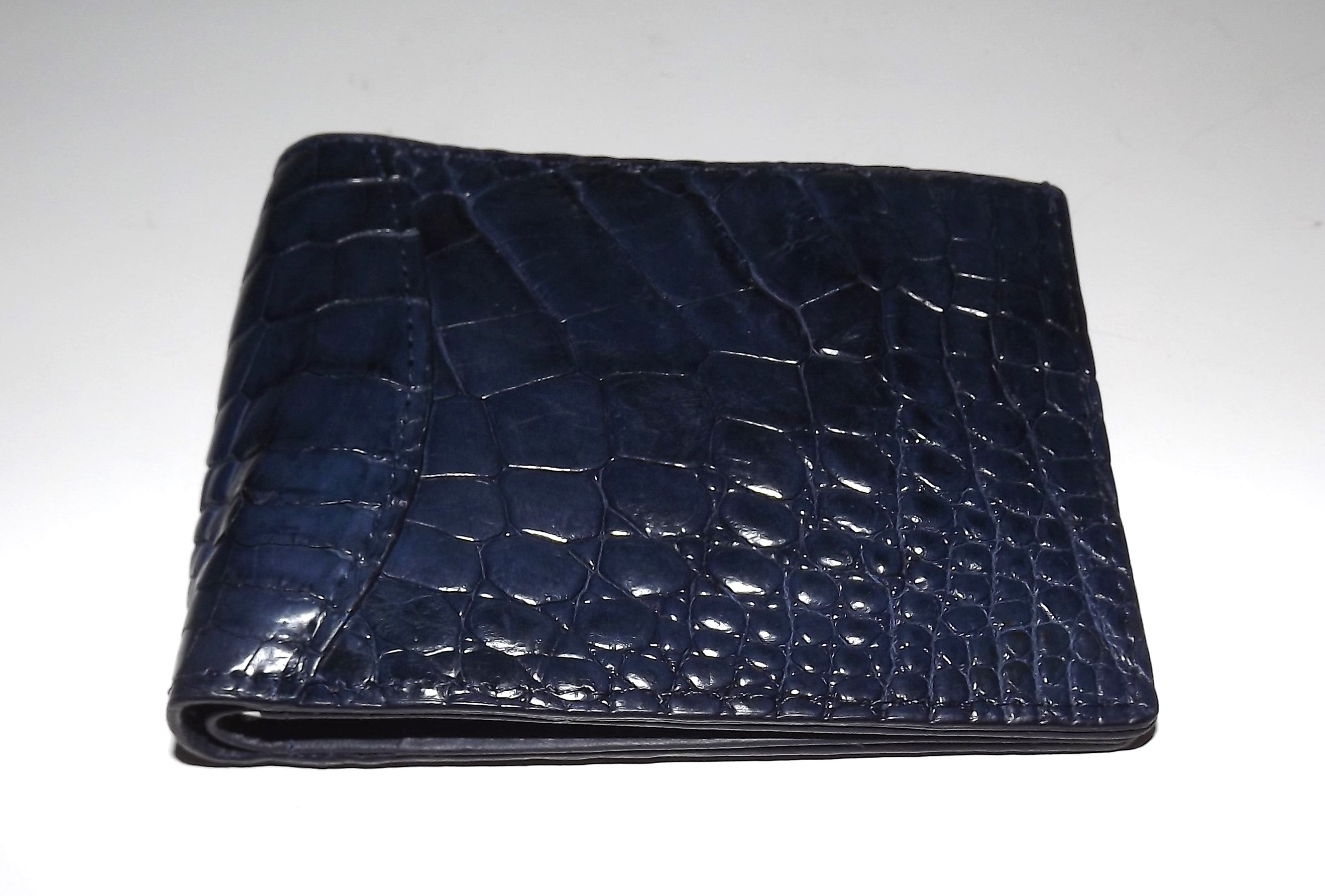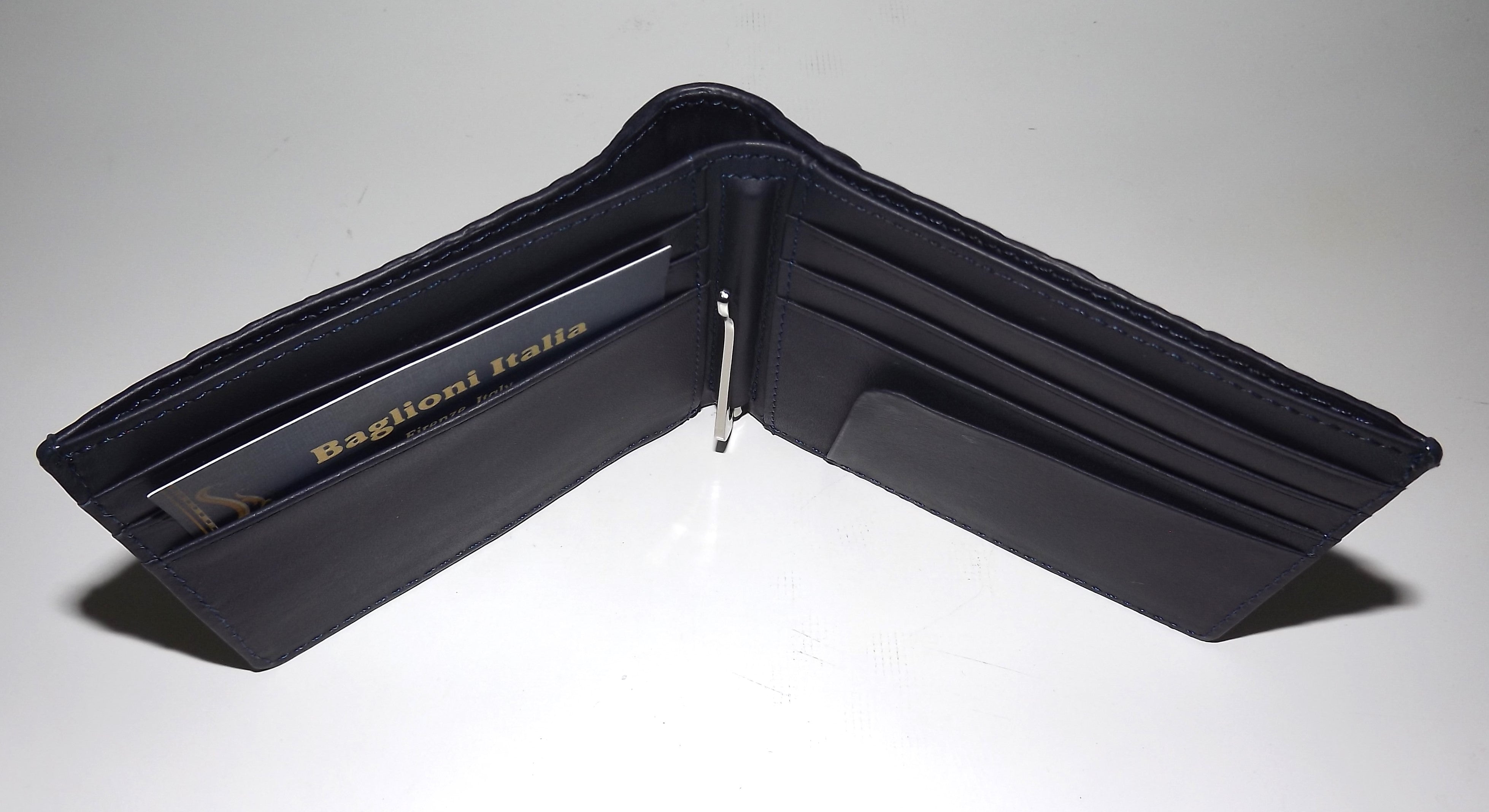 Baglioni Italia Genuine Crocodile Bifold 7 Pocket Money Clip Wallet Navy Blue